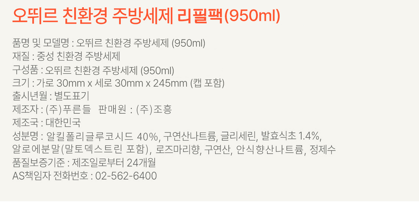 [본품+리필구성] New 오뛰르 친환경 주방세제 by 오뚜기SALE